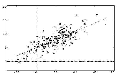 Say you have two vectors of data and you suspect that there exists some kind of a statistical dependence between them. You create a scatter-plot and look for a functional relationship between the two vectors. The technique of linear regression amounts to drawing the best fitting straight line through this data set: